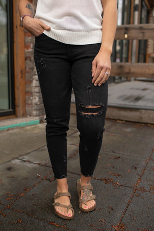 Risen Black Destroyed Relaxed Skinny Jeans (1-22)