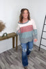 Pink Gray Blocked Oversized Wide Neck Pullover Sweater