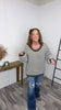 Olive Striped Knitted Scoop Neck Oversized Sweater