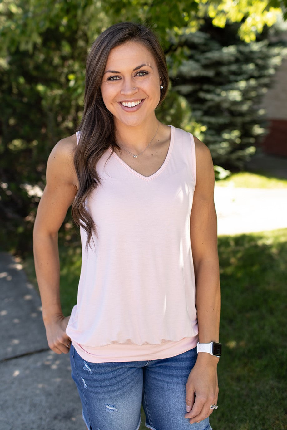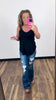 Black Color Stitch Vneck Flowy Tank (SM-XL)