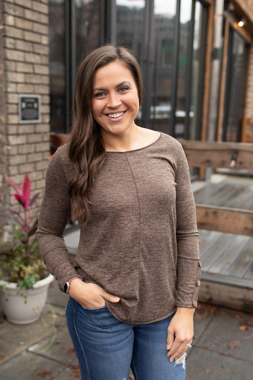 Brown Brushed Hacci Pocket Sweater (SM-3X)