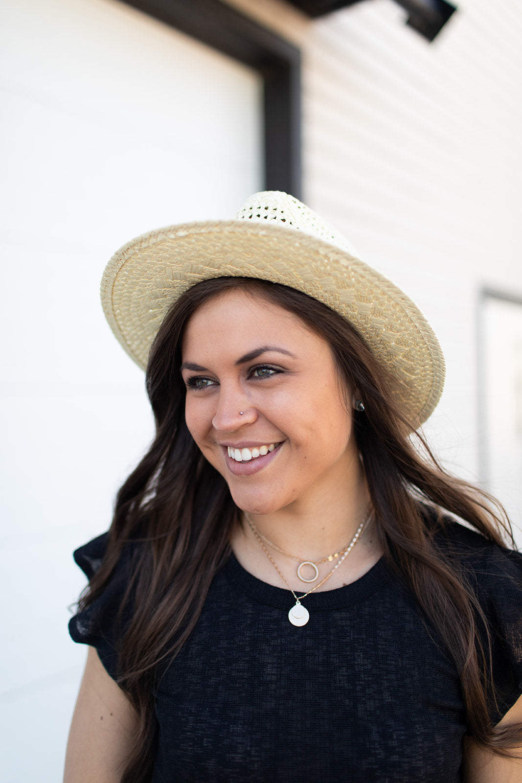 Black Mini Braid Strap Wide Brim Panama Hat