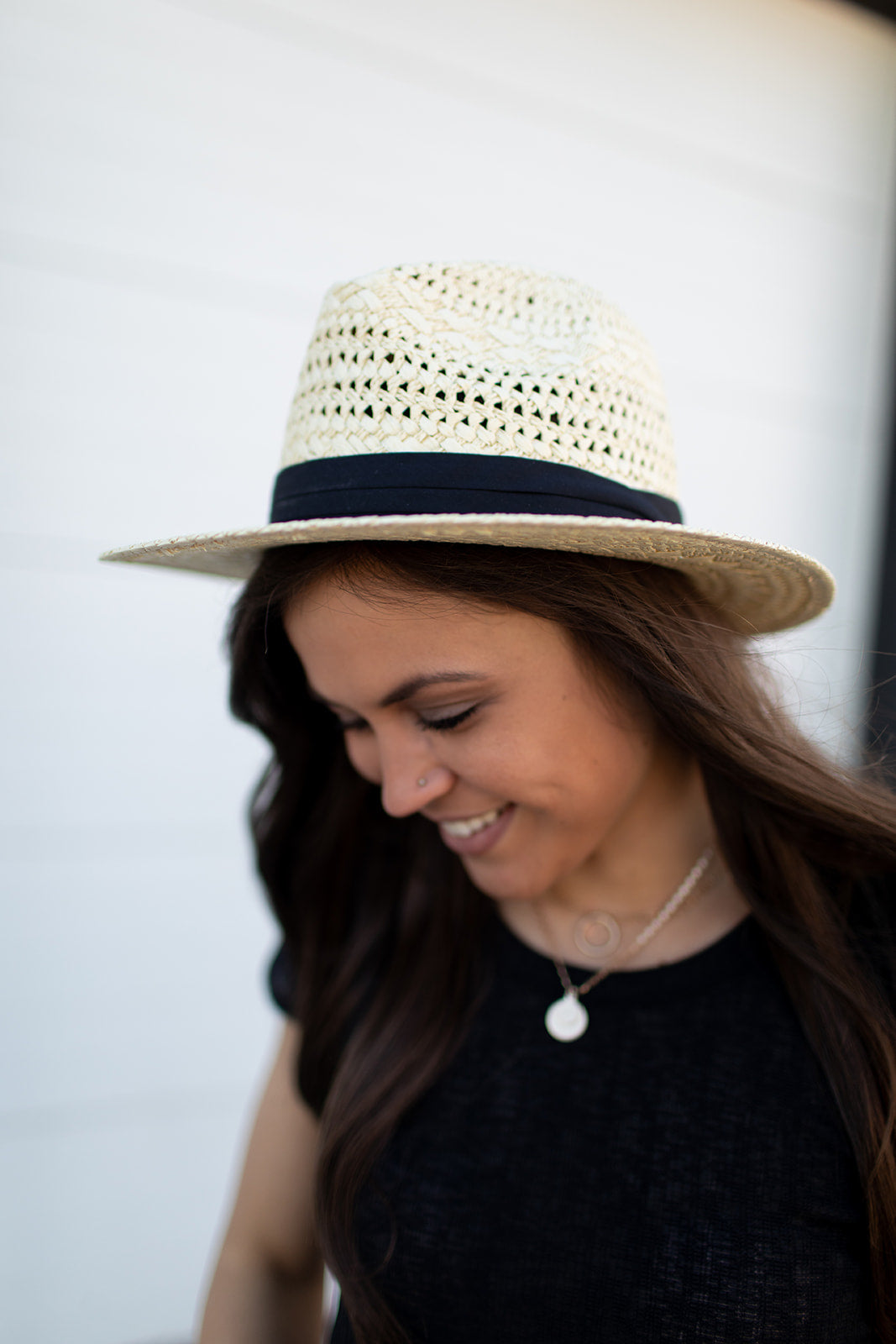 Black Bead Strap Panama Hat