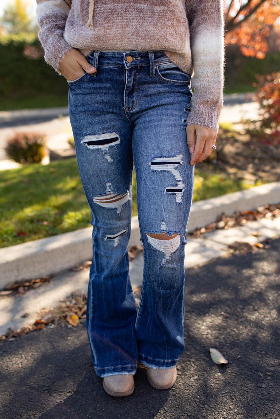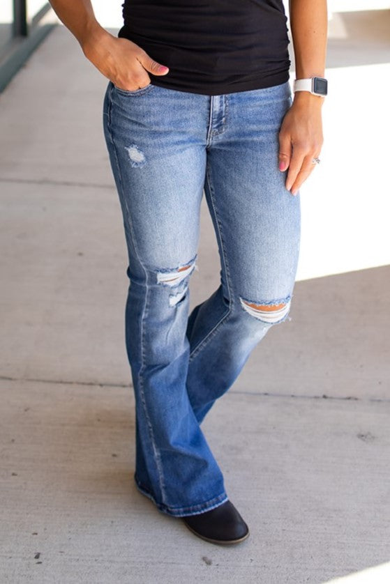 Peyton Destroyed Mid Rise Flare Jeans (1-22) - 31" Inseam