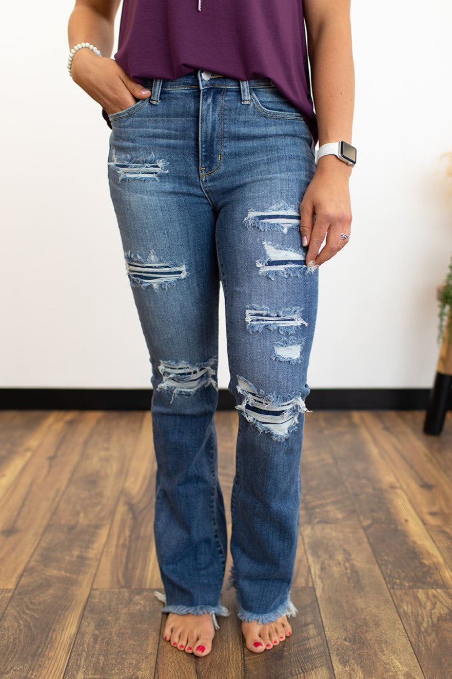 Risen High Rise Destroyed Straight Jeans (1-22)