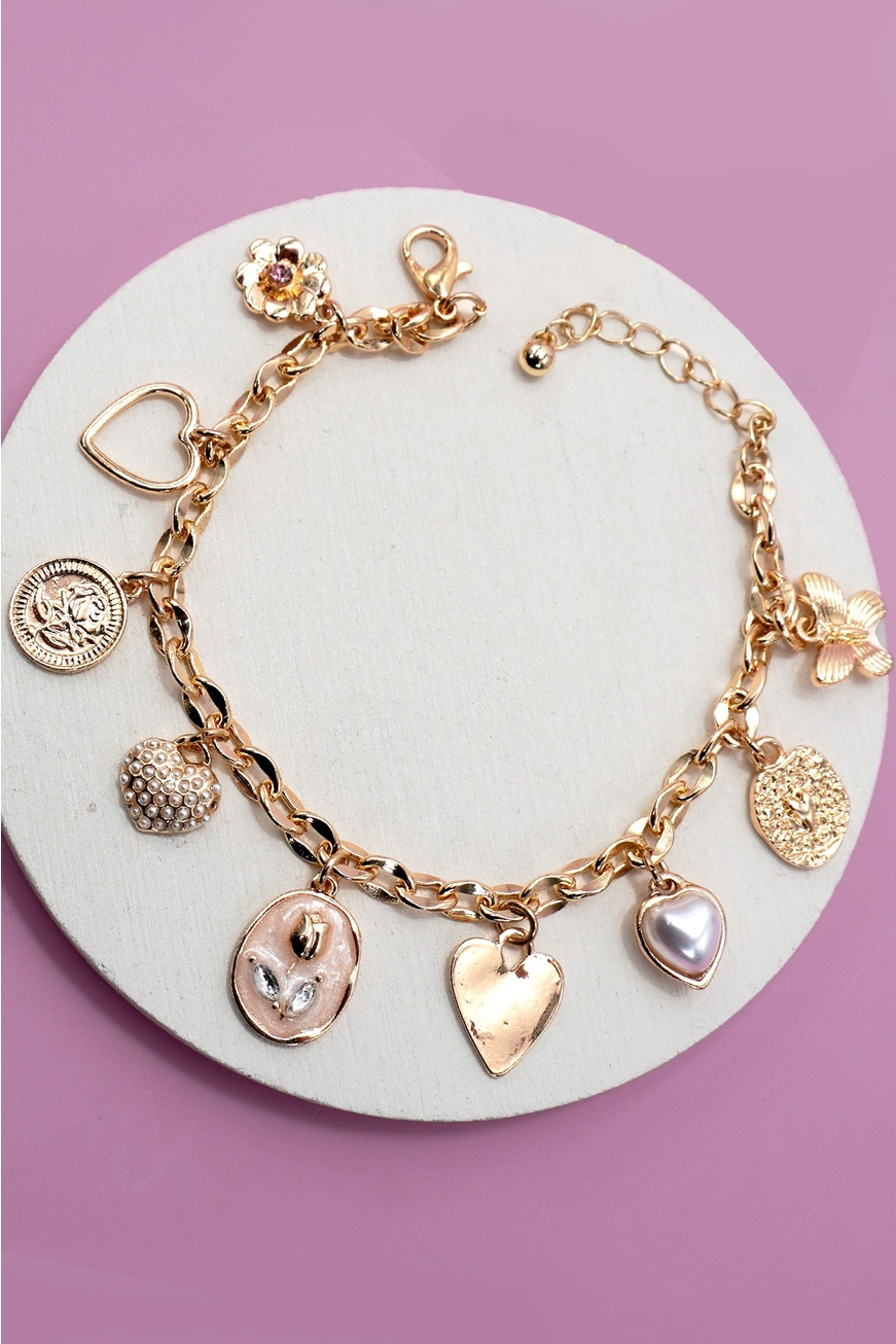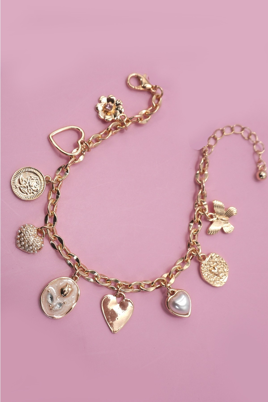 Gold Heart & Rhinestone Charm Bracelet