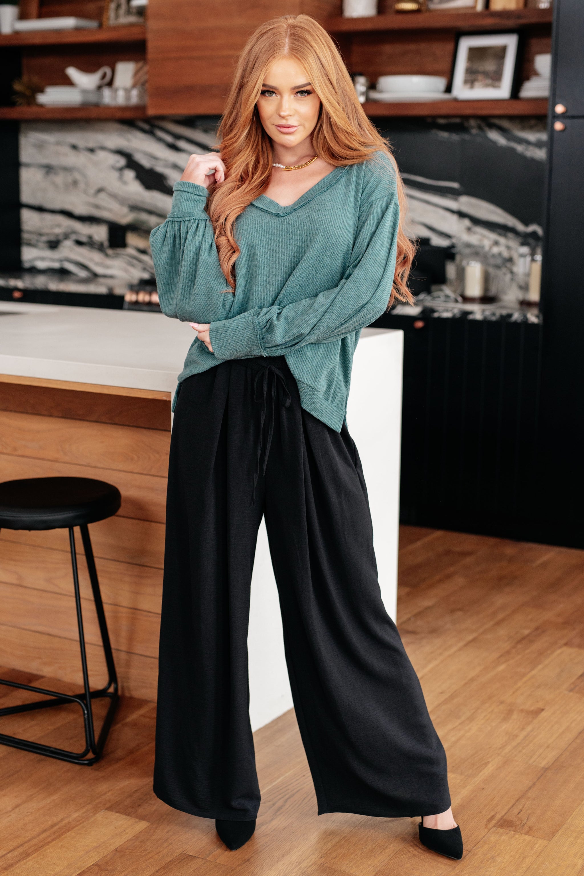 Look stunning in this trendy and comfy Doesn't Compare Top made from a soft, brushed marble knit fabric. This V-neck top features raw edge details, dropped shoulder and balloon sleeves for a unique look. Perfect for day-to-night wear!