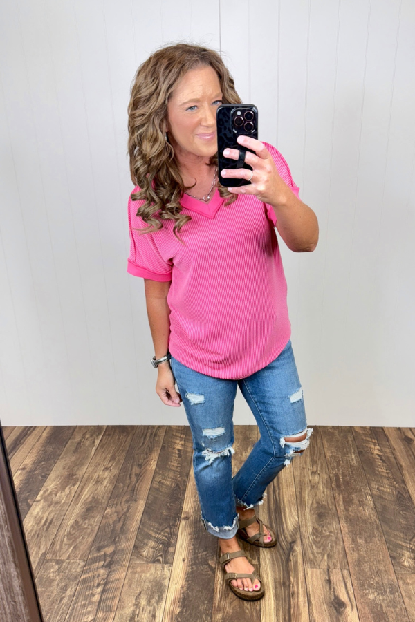 Hot Pink Basic Crew Neck Tee (SM-3XL)