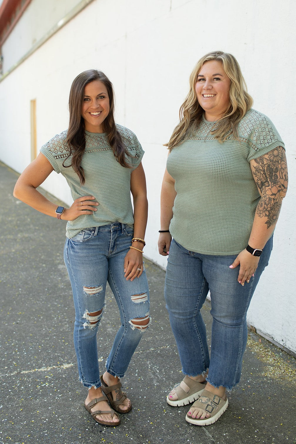 Olive Green Vneck Loose Long Sleeve Basic Tee (SM-3X)