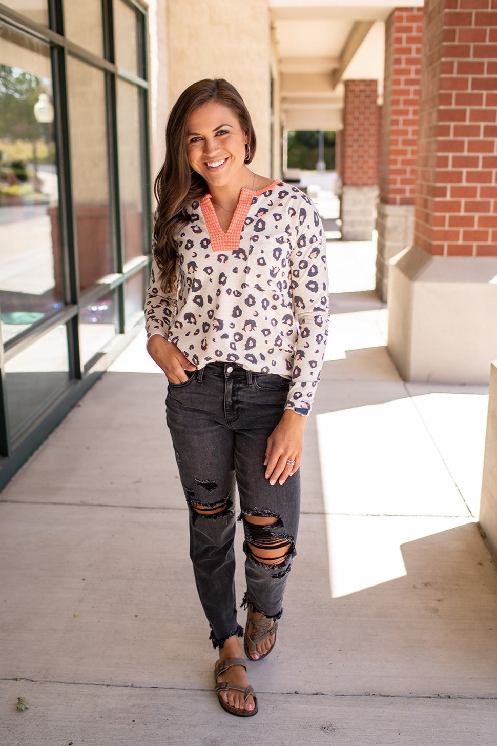 Office Safari Keyhole Tie Detail Blouse (SM-3X)