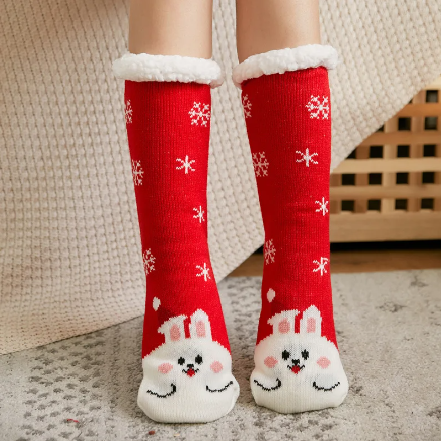 Burgundy Santa Holly Sherpa Slipper Socks-79