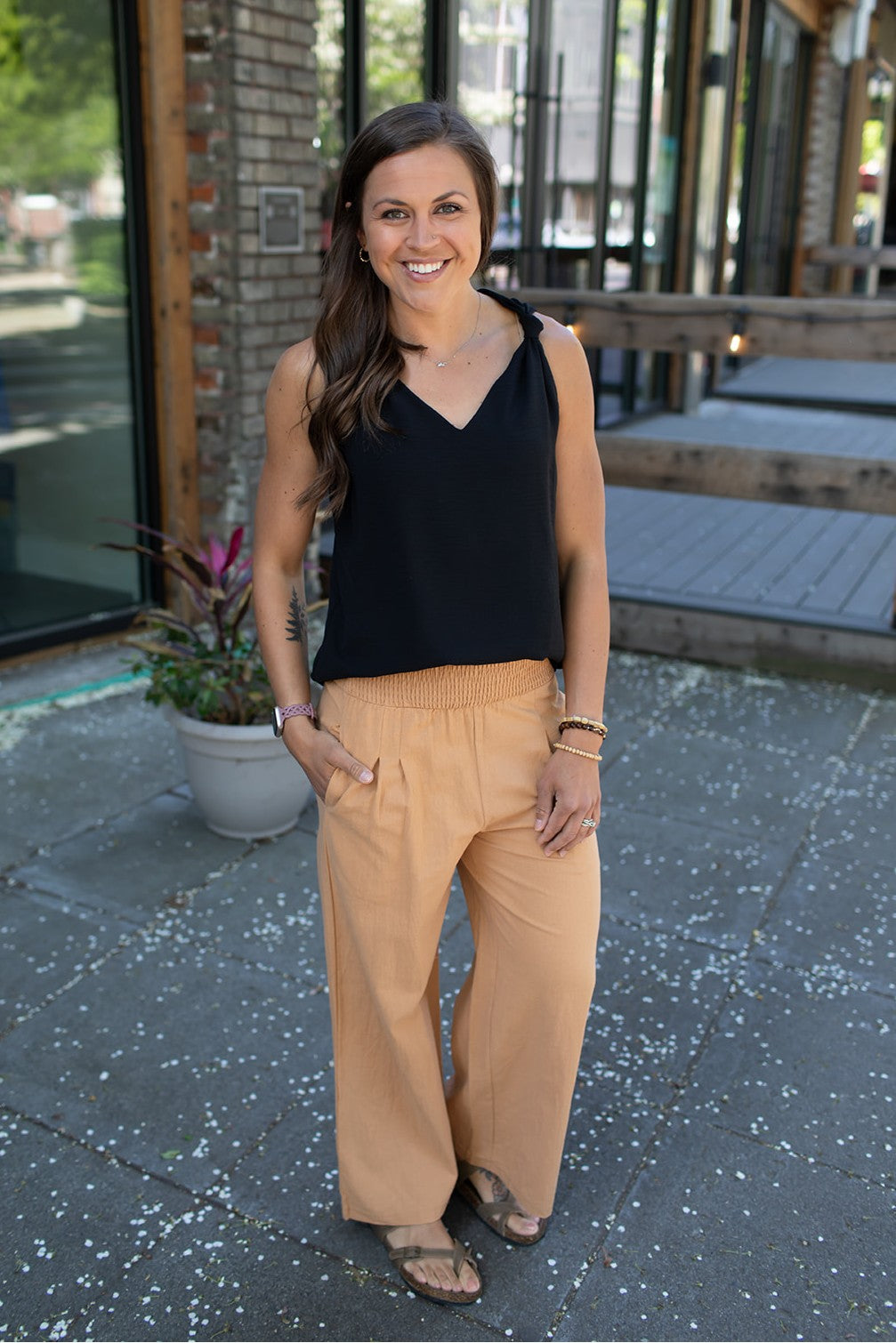 Peach Sand Basic Cotton Long Adjustable Spaghetti Strap Cami Tank