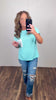 Olive Green Vneck Loose Long Sleeve Basic Tee (SM-3X)