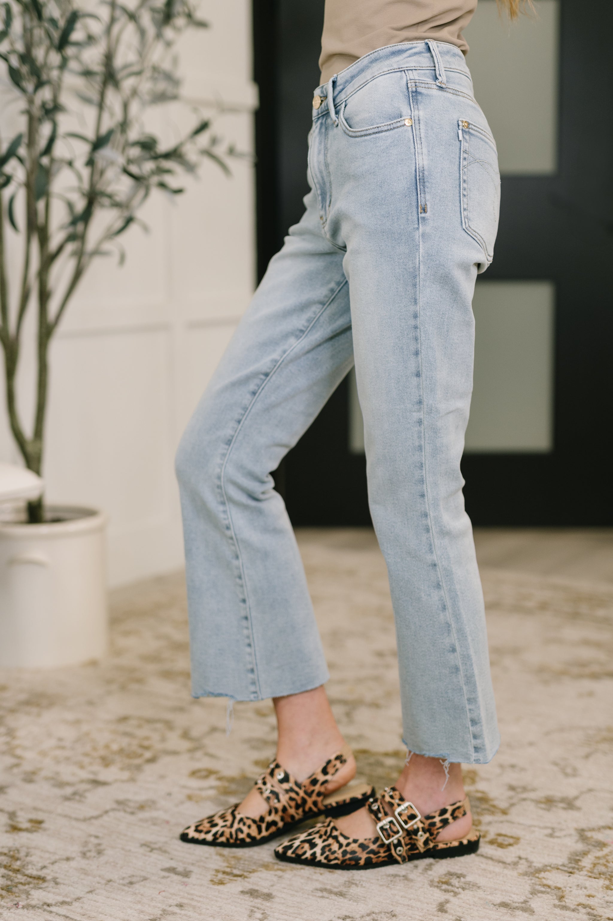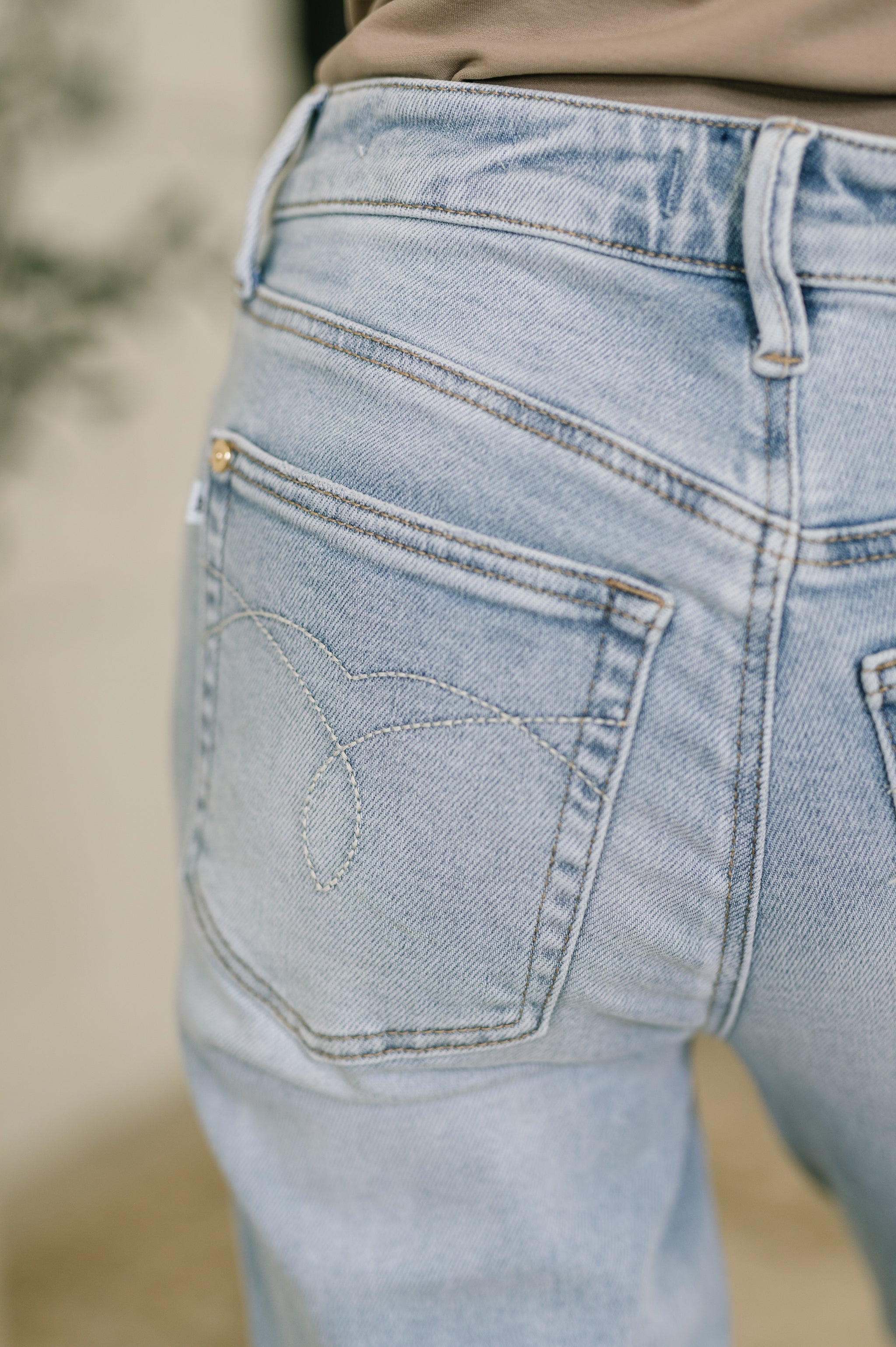 Meet Martha, your new favorite pair of Judy Blue jeans! This mid-rise kick flare features a button fly and light wash that's perfectly lived-in without the fuss. The raw hem adds an edgy touch, while 4-way stretch fabric keeps you comfortable from morning to night. Whether you're running errands or heading out with friends, these flares deliver style and movement in one irresistible package.