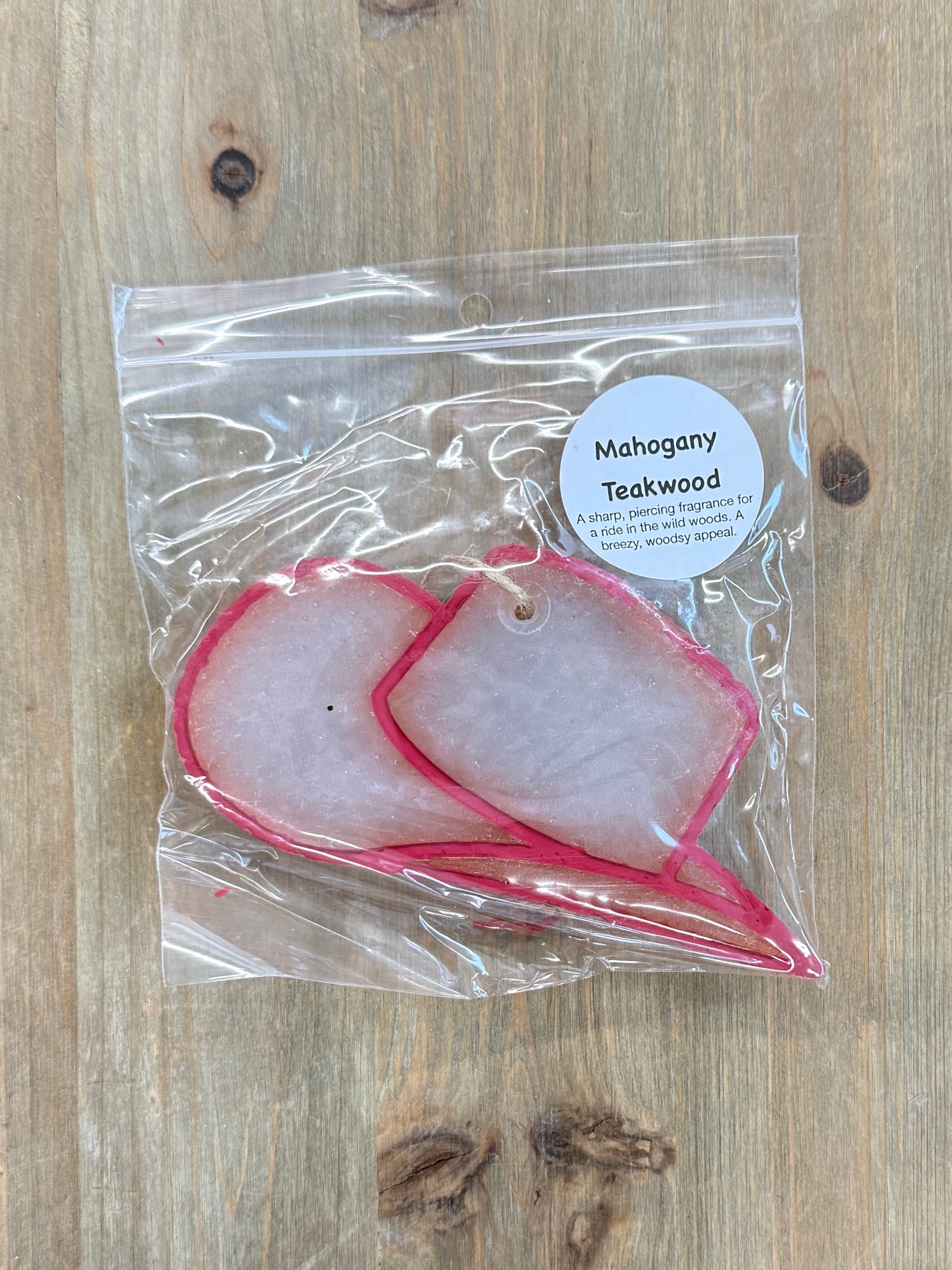 Handmade Car Air Freshener. Lasts 2-3 months.Shapes & Colors will vary so be sure to check the options.**Mahogany Teakwood: A sharp, piercing fragrance for a ride in the wild woods. A breezy, woodsy appeal.
